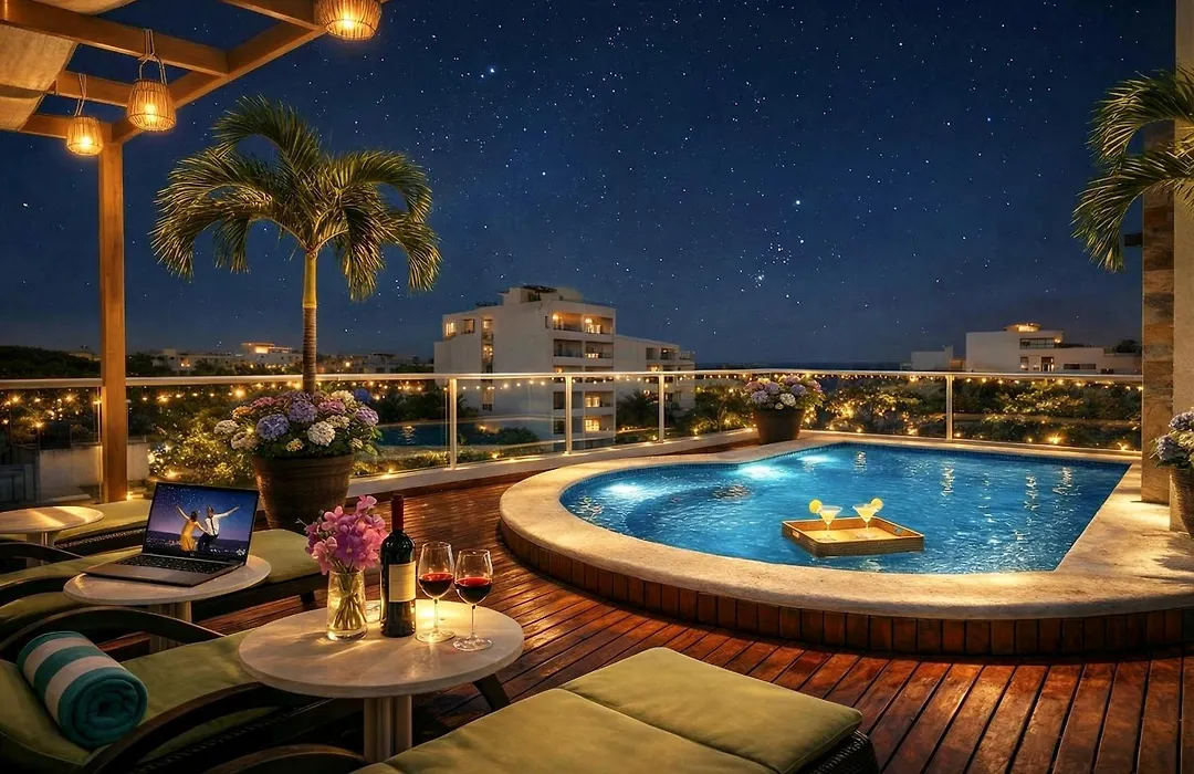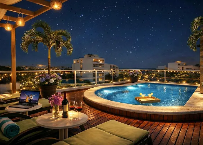 Gæsterne kan tilberede hjemmelavede måltider i et fuldt udstyret køkken. Denne ferielejlighed har udsigt over byen fra en terrasse. Efter en dag med sightseeing i Playa del Carmen kan du på stedet slappe af i en pool på taget.